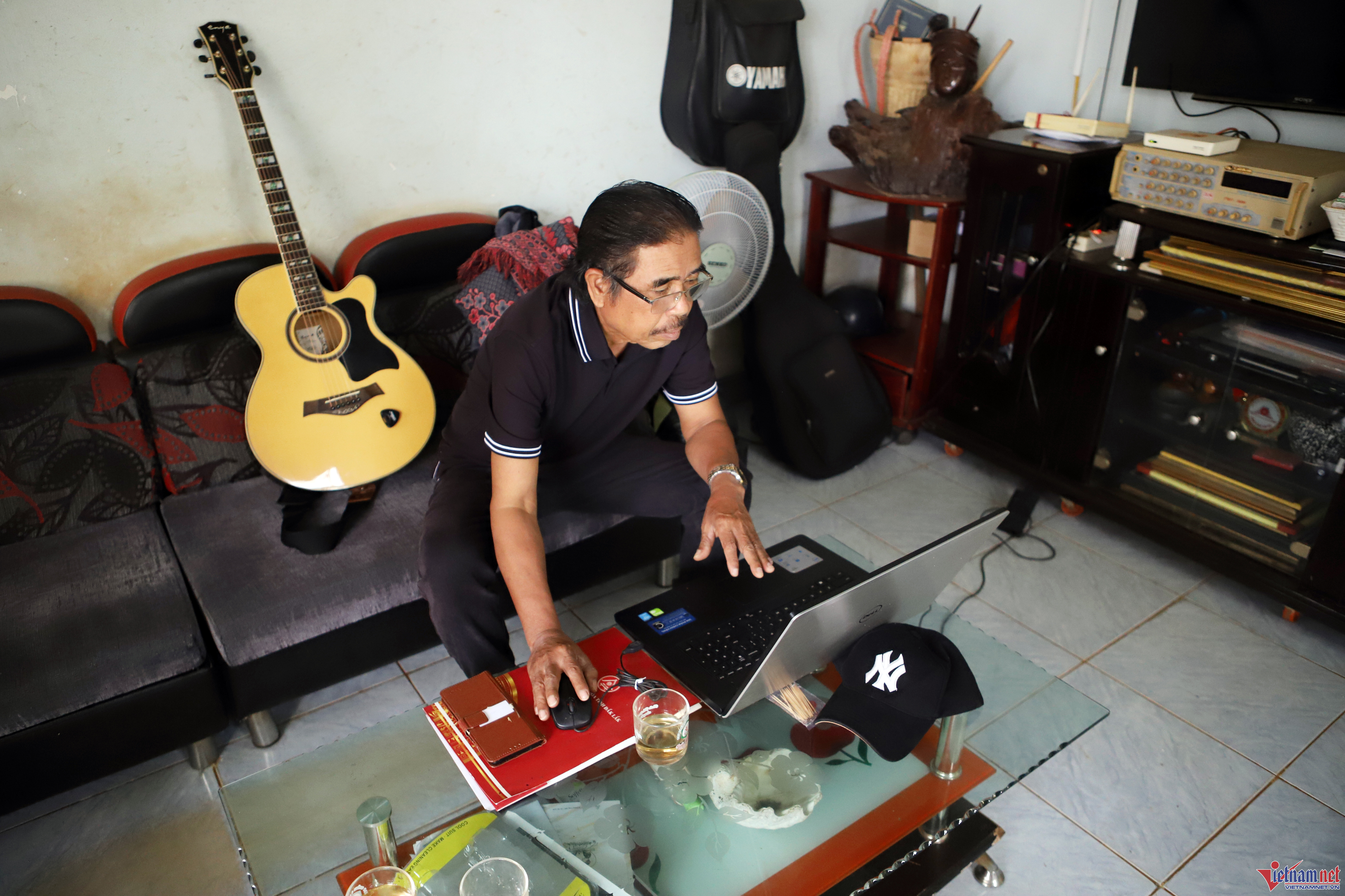 Nắng chiều ngày cuối năm len lỏi qua tán lá dưới hiên nhà, gió se se lạnh, Y Phôn K’Sơr mặc quần jeans, áo ấm ngồi ôm đàn guitar hát trước sân nhà ở TP Buôn Mê Thuột (Đắk Lắk). Tiếng hát văng vẳng: “Cha đi lượm quả ngọt, cho con đỡ đói qua đêm. Cha đi lượm hạt thóc, cho con một bát cơm chiều” làm tôi có chút bâng khuâng khó tả.