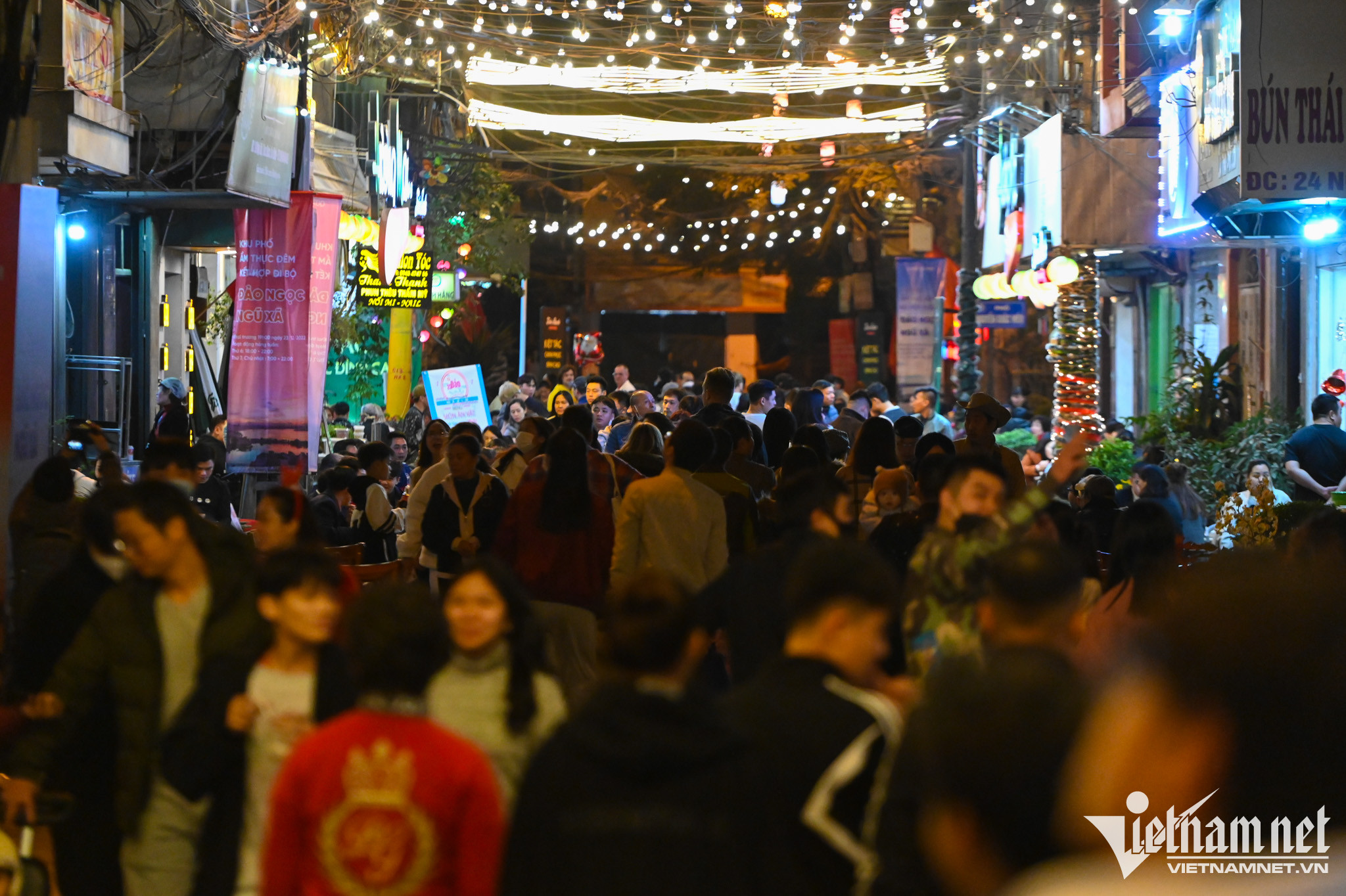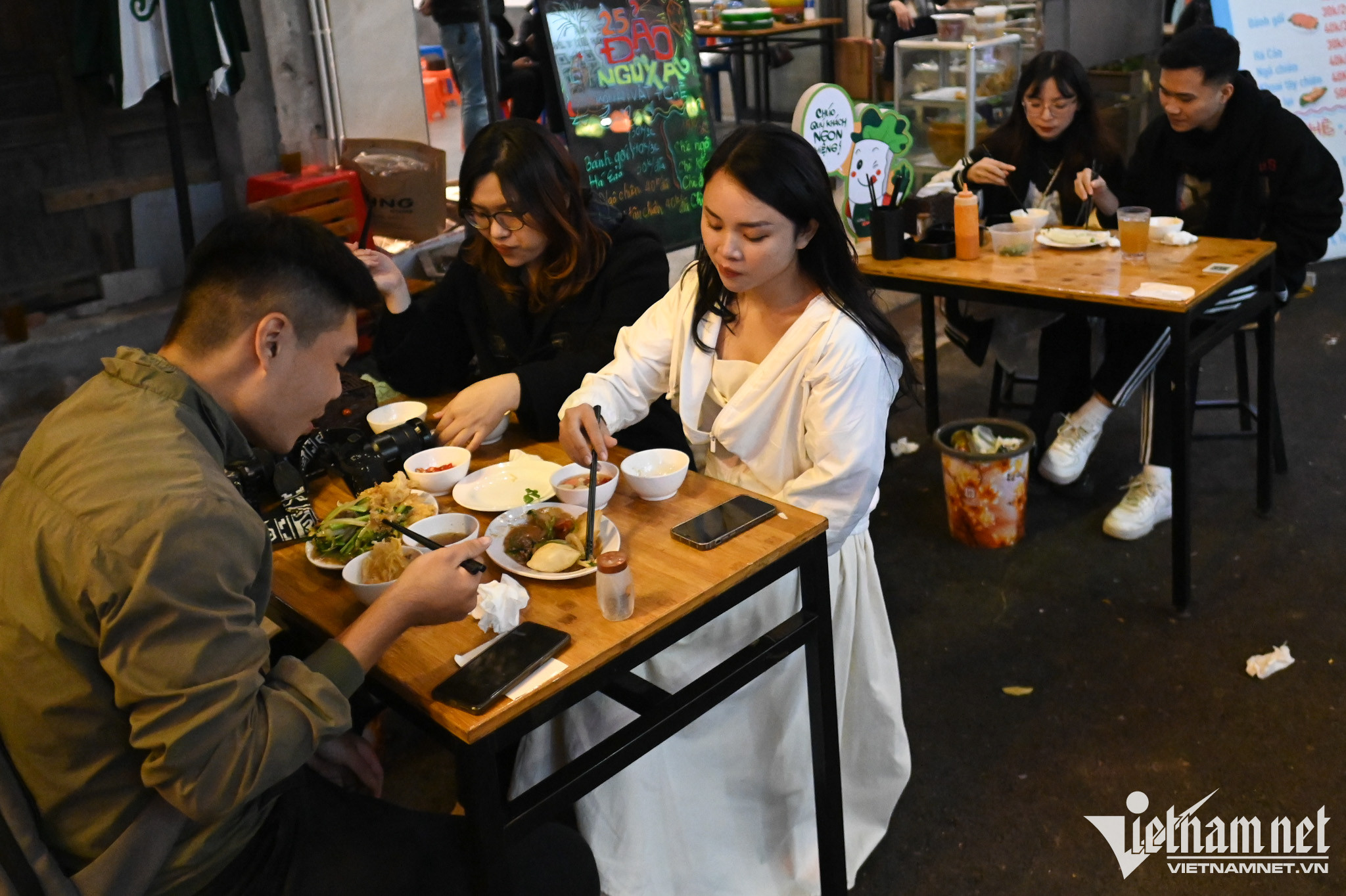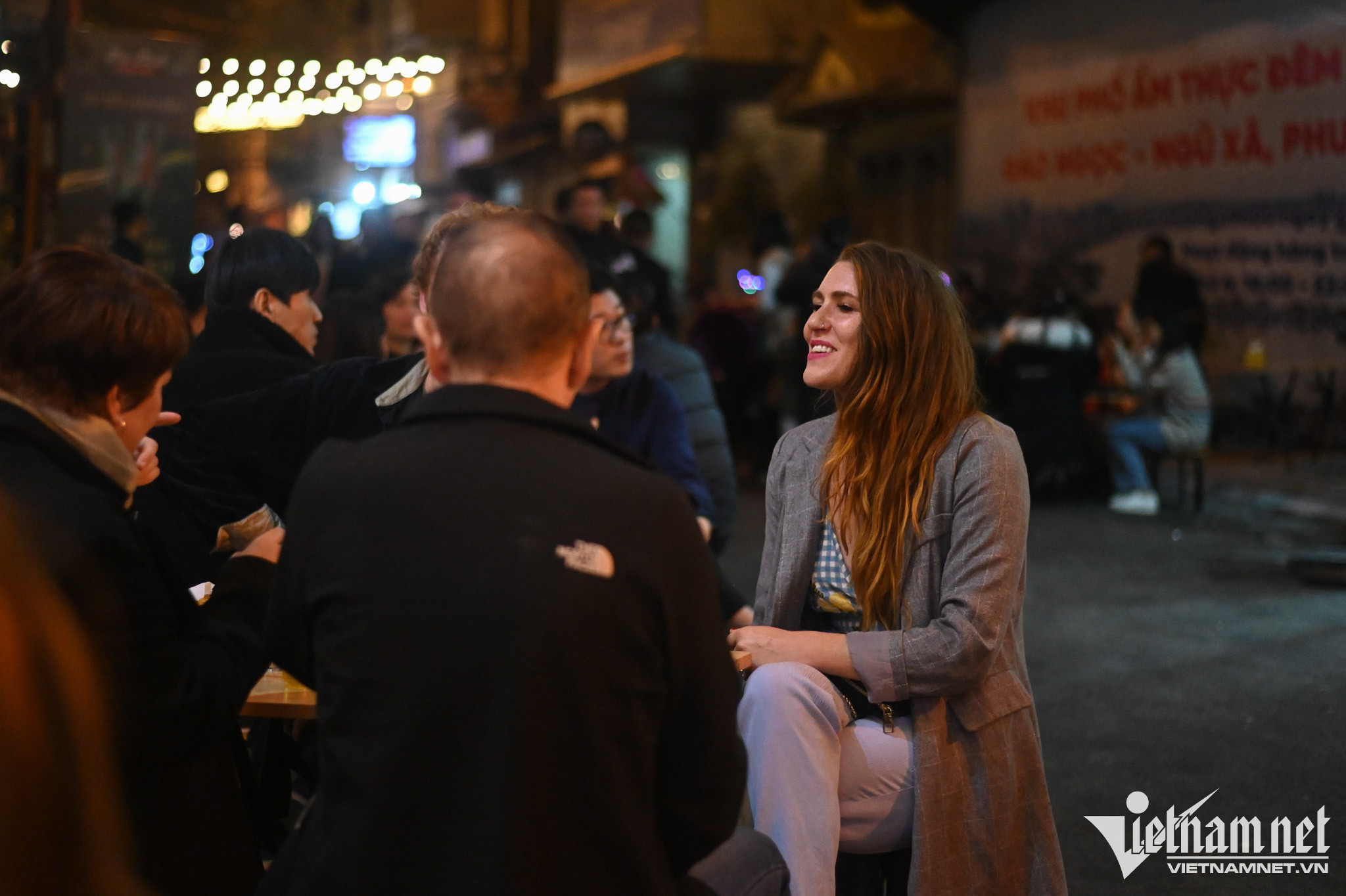 Du khách nước ngoài thích thú chụp ảnh check-in hoặc thưởng thức ẩm thực. Phố đi bộ Ngũ Xá bao quanh hồ Trúc Bạch, ngay sát hồ Tây, là nơi sinh sống và làm việc của nhiều du khách tại Việt Nam.