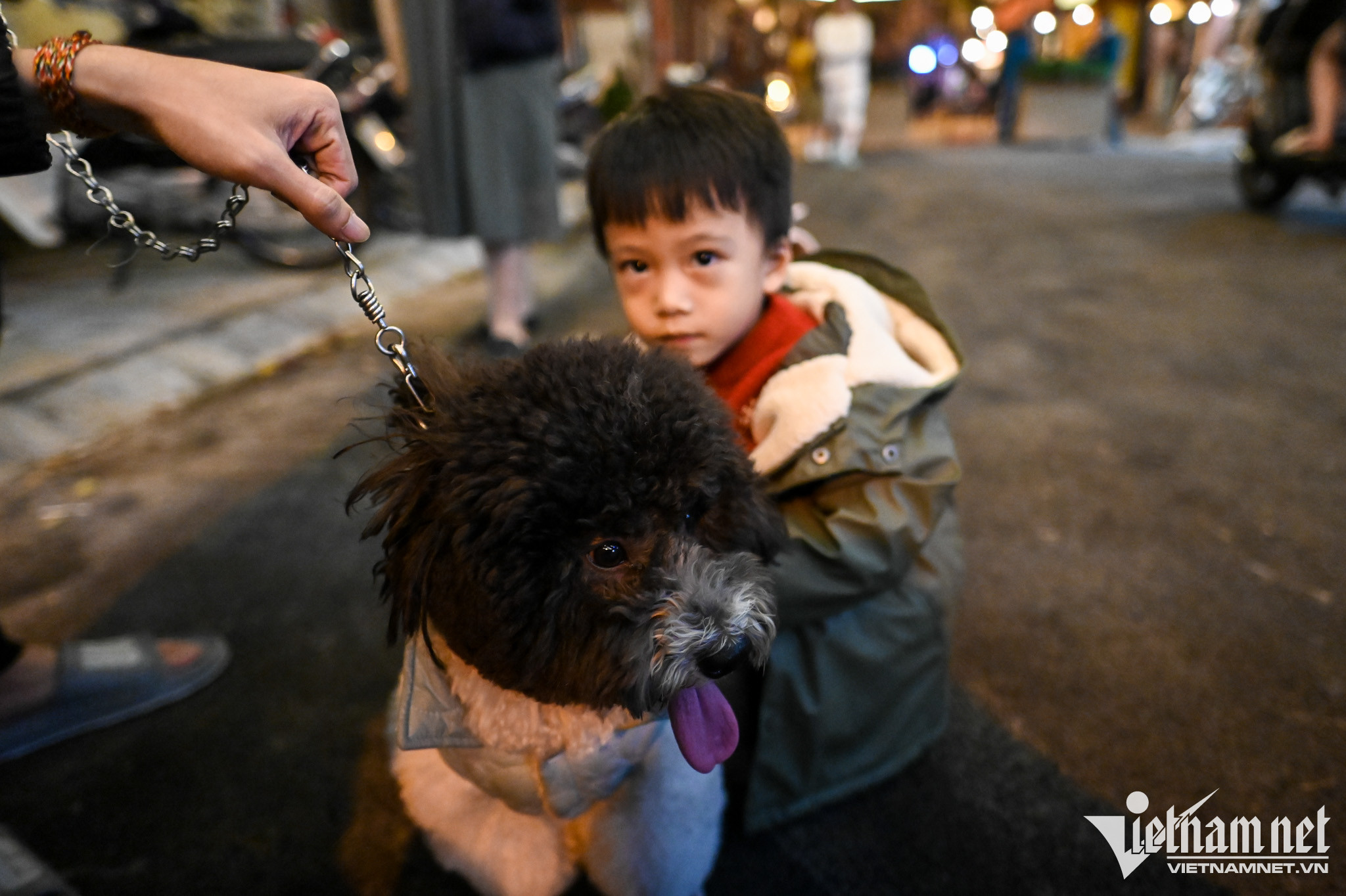 Nhiều gia đình mang theo thú cưng đi dạo trong buổi tối Hà Nội se lạnh.