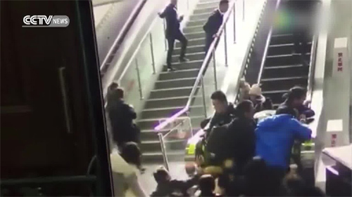 Hơn chục người ngã lăn ra đất khi một thang cuốn thình lình đổi hướng. Ít nhất 5 người bị thương.
