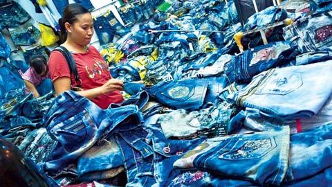 Nhiều mẫu mã chủng loại quần jeans có thương hiệu của Trung Quốc được nhập và bán nhiều tại các chợ sỉ trong TP HCM và các tỉnh với giá thường cao hơn giá bán hàng jeans nội địa, nhưng thị trường vẫn chuộng mua.