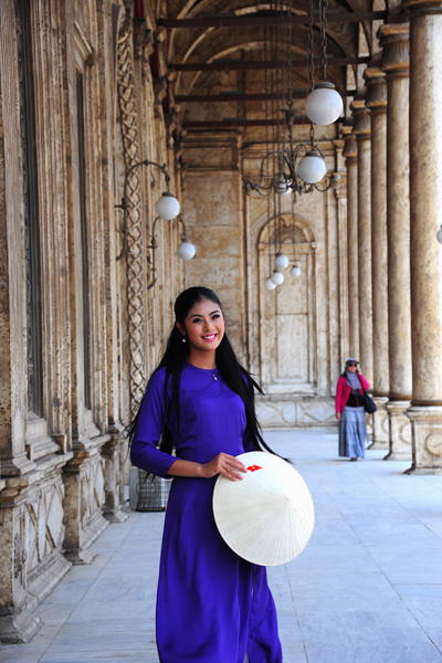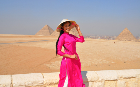 Hình ảnh Ngọc Hân ở Ai Cập trong trang phục áo dài: