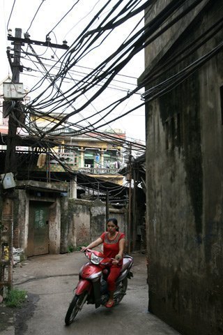 Dây điện len lỏi vào các con ngõ phủ kín không gian trên đầu người.
