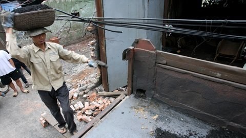 Mọi công việc bốc dỡ được thực hiện ngay sát "lưới trời" gồm cả dây điện trần.