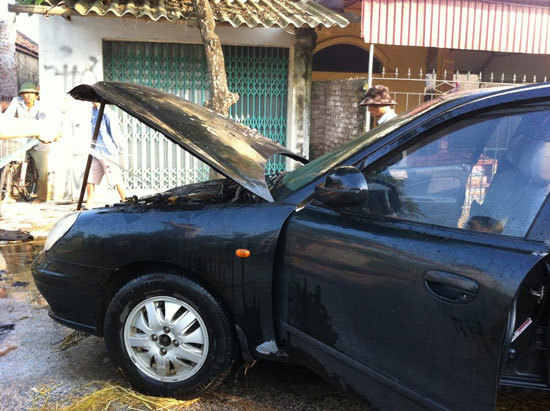 | Chiếc Kia của anh Dũng bị cháy đen (Ảnh: Tuổi Trẻ). |