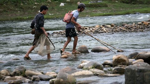 Suối Thia, dòng suối dài nhất chảy qua Mường Lò nổi tiếng với những loài cá đặc sản như cá Sỉnh, cá Khuy… nay đang dần cạn kiệt là nơi săn bắt cá chủ yếu của những “thợ” săn cá vùng Mường Lò.