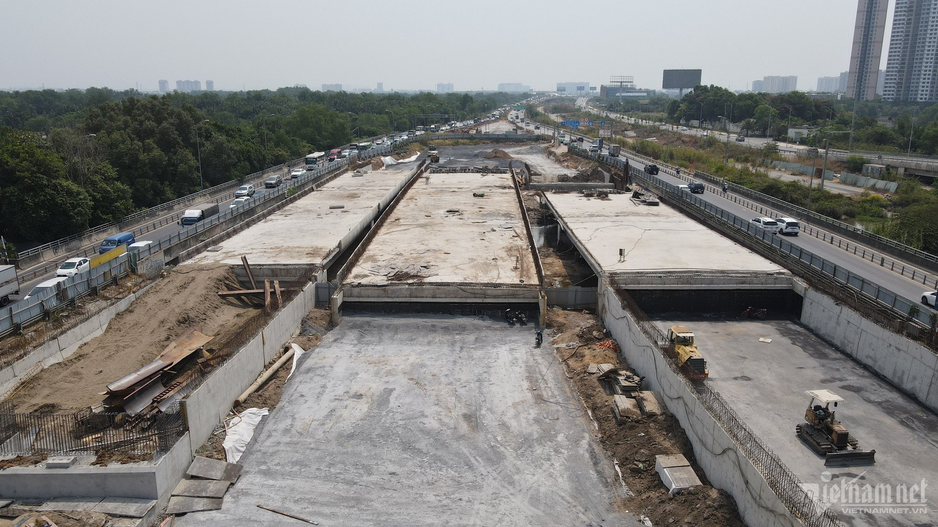 Hiện các nhà thầu đang chuẩn bị thi công đoạn hầm kín qua nút giao Đồng Văn Cống. Theo thứ tự, nhà thầu phải thi công từng đốt hầm một sau đó trả lại mặt bằng, thi công tiếp các mố trụ trên cao. Nếu lần lượt thi công theo những công đoạn này, thời gian sẽ kéo dài hơn.