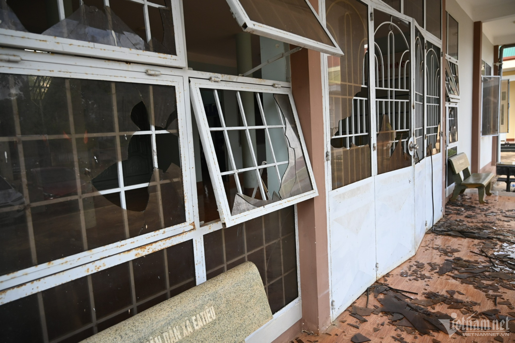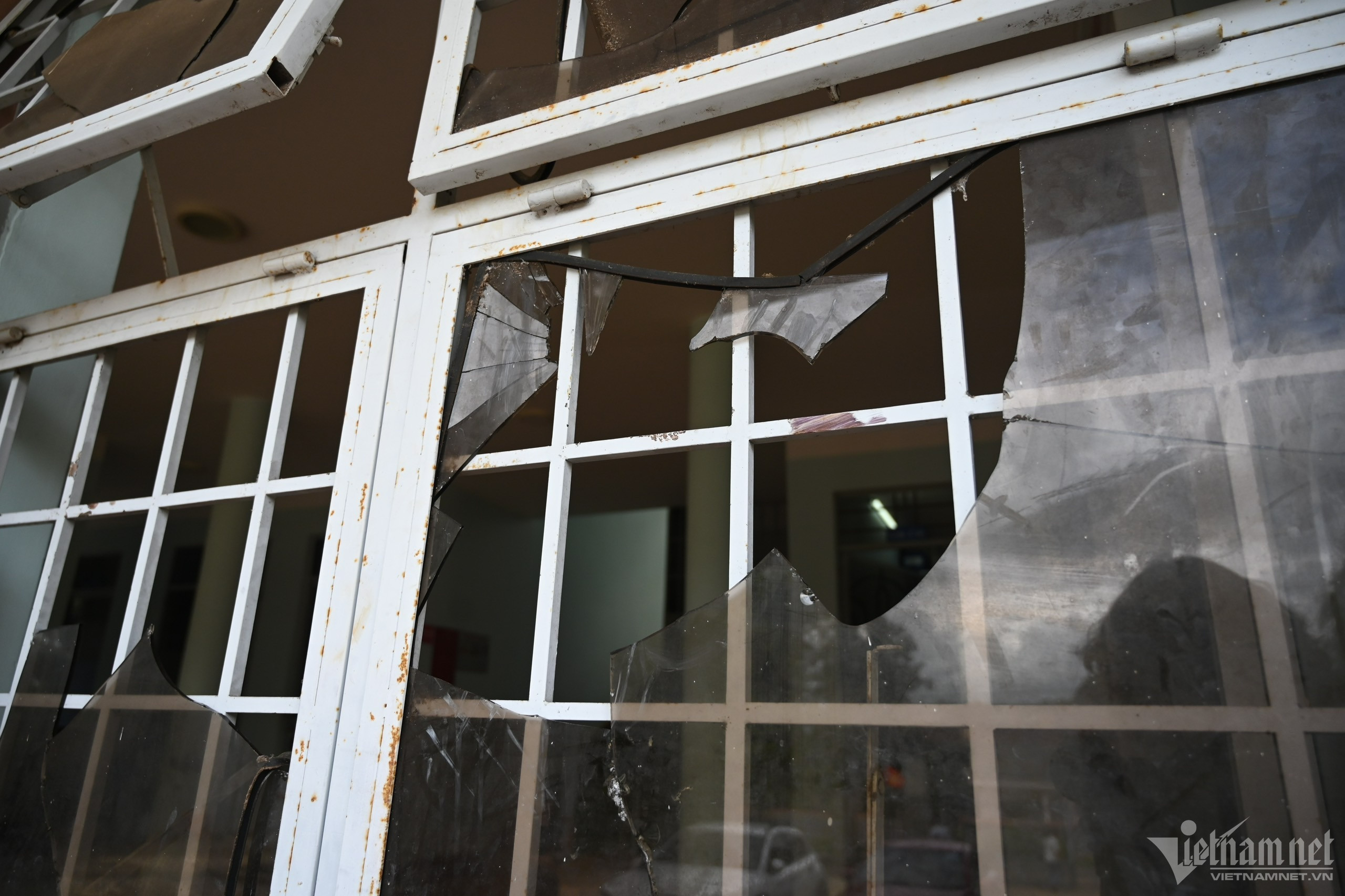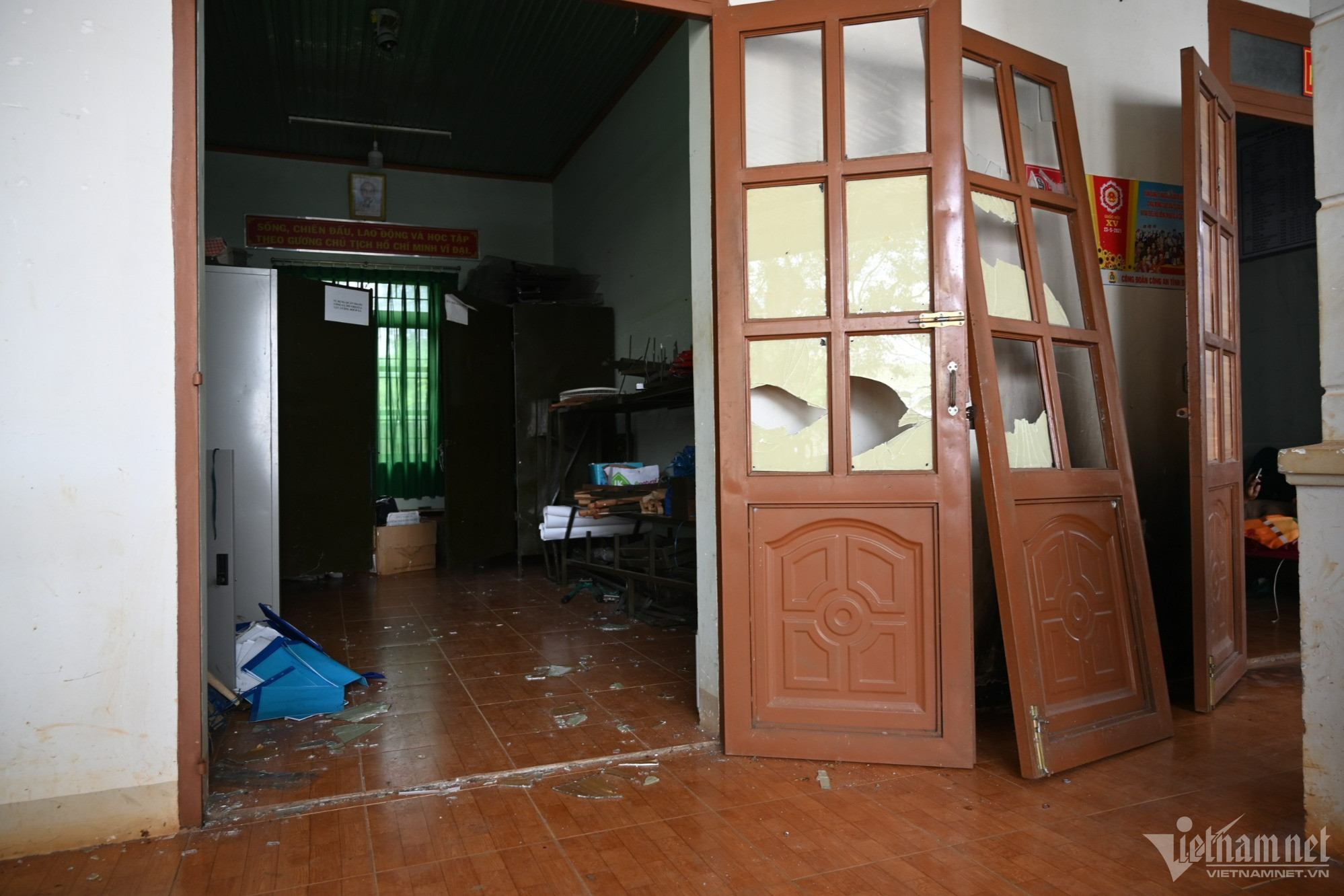 Giấy tờ vương vãiCửa kính hội trường xã Ea Tiêu bị đập vỡ vụnCửa phòng làm việc ở trụ sở xã cũng bị phá hỏng