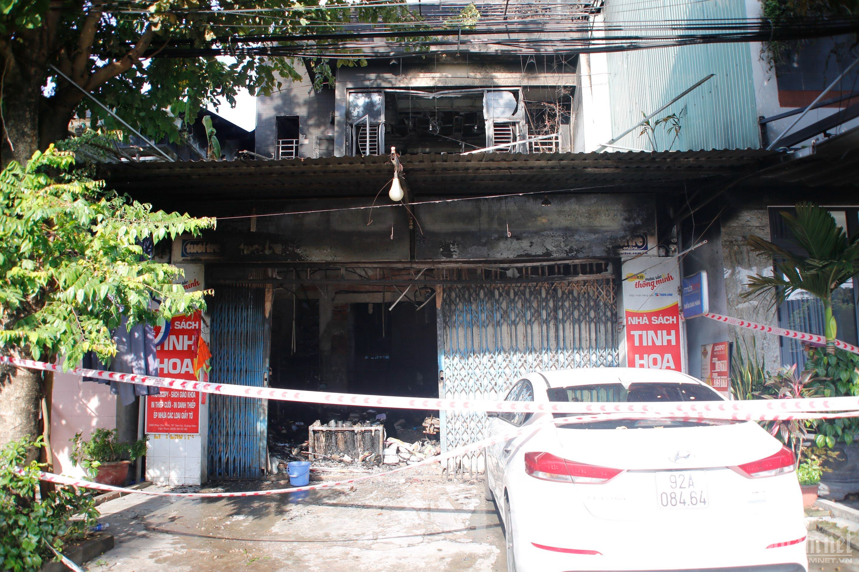 Vụ cháy cửa hàng văn hóa phẩm lúc nửa đêm tại Quảng Nam khiến hai người tử vong, hiện trường vụ cháy ngổn ngang, nhiều thiết bị, văn hóa phẩm bị thiêu rụi.Khoảng 3h ngày 31/5, lửa bốc cháy tại cửa hàng kinh doanh văn phòng phẩm T.H. (thuộc khối phố 1, phường An Sơn, TP Tam Kỳ, tỉnh Quảng Nam).Nhận tin báo, lực lượng chức năng đã đến hiện trường chữa cháy. Do ngọn lửa bùng phát vào lúc nửa đêm, nơi xảy ra đám cháy nhà cửa kiên cố, đóng kín, việc chữa cháy, cứu nạn gặp nhiều khó khănNhiều văn phòng phẩm bị cháy thành thanToàn bộ tầng 1 tòa nhà bị thiêu rụiCác cuộn giấy ra troXác định ban đầu có 2 vợ chồng chủ tiệm sách tử vong. Người chồng là N.T. (SN 1954), vợ là N.T.H. (SN 1955).Nguyên nhân vụ việc đang được cơ quan chức năng điều tra, làm rõ