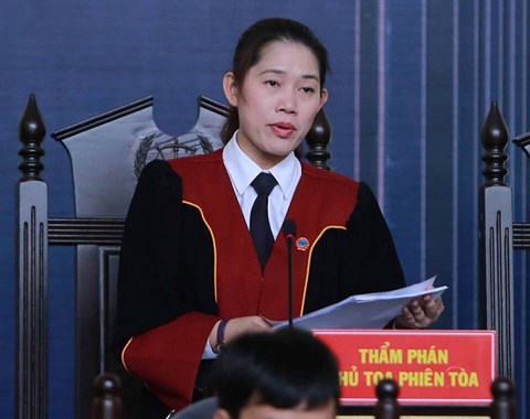 | Thẩm phán Nguyễn Thị Thùy Hương - Chủ tọa phiên tòa. Bà Hương đã điều hành phiên tòa một cách khoa học, quyết đoán và bản lĩnh. Trong lời nói sau cùng, các bị cáo đều khẳng định phiên tòa diễn ra công khai - dân chủ, đúng với tinh thần cải cách tư pháp. |