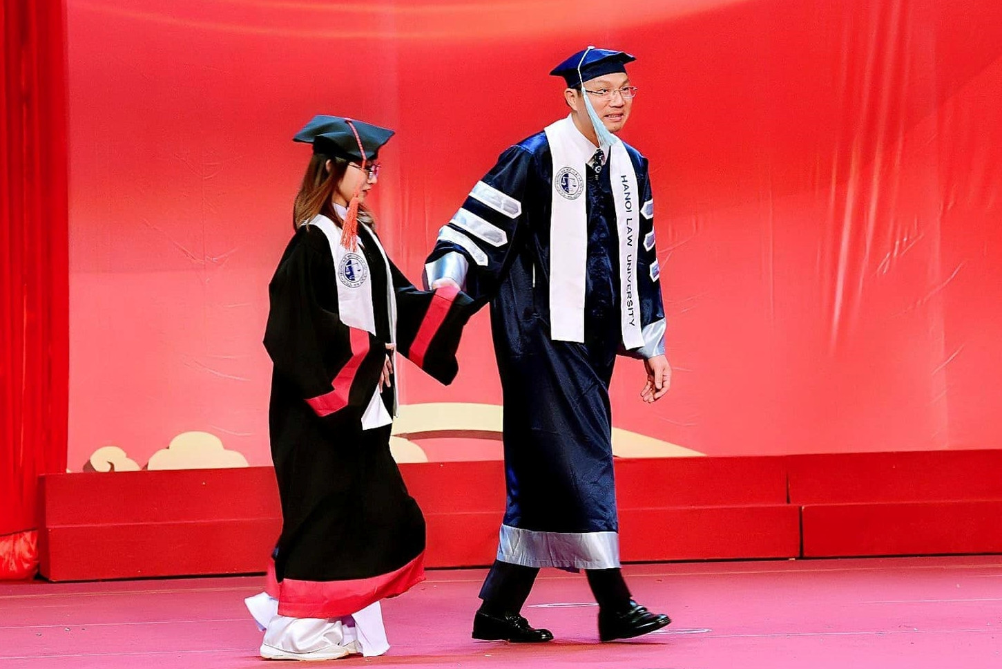 Trong buổi lễ trao bằng tốt nghiệp cho sinh viên Trường ĐH Luật Hà Nội diễn ra vào ngày 25/6 vừa qua, hình ảnh cô sinh viên mắc bệnh bại não được đích thân thầy hiệu trưởng dắt ra sân khấu nhận bằng tốt nghiệp khiến nhiều người xúc động.