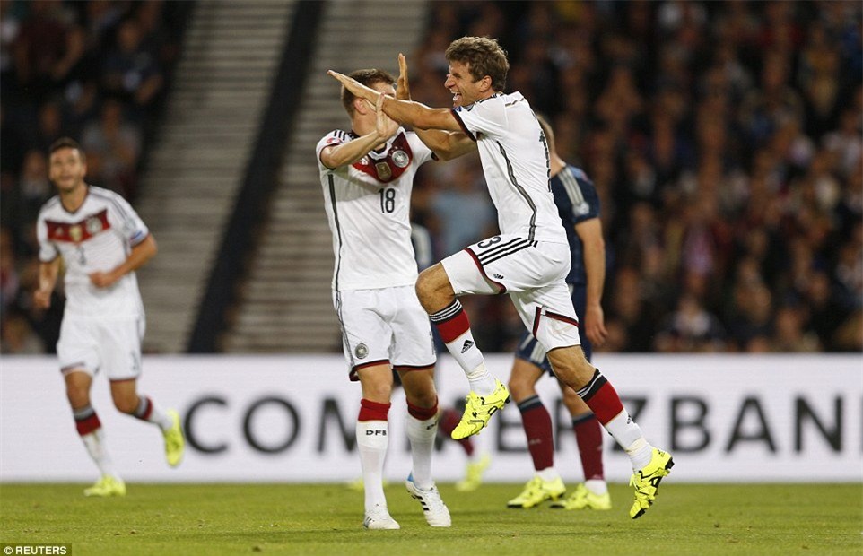 Giành thêm 3 điểm, Đức vẫn chễm chệ trên ngôi đầu bảng D (19 điểm) và tràn trề cơ hội giành vé sang Pháp hè sang năm. Trong khi đó, Scotland mới được 11 điểm và rất khó cạnh tranh với những đối thủ xếp trên như Ba Lan (17 điểm) hay CH Ireland (15 điểm).