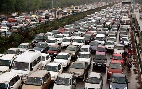 Giao thông trên đường Delhi-Gurgaon tại ngoại ô New Delhi lâm vào tình trạng tắc nghẽn. (Ảnh: AP)