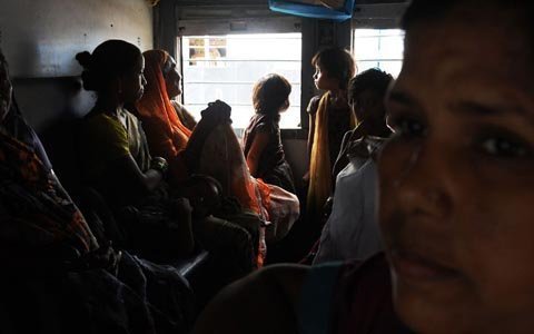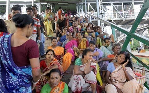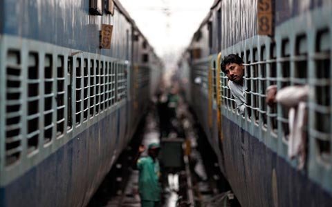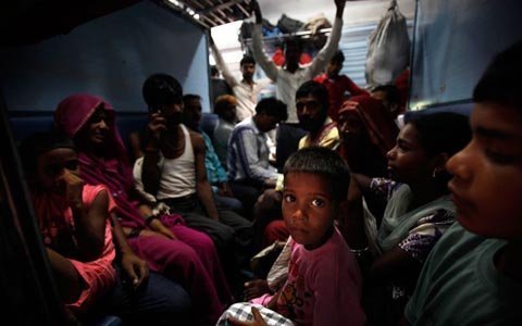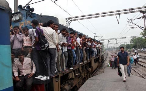 Các hành khách đứng chen chúc tại một nhà ga ở New Delhi. (Ảnh: EPA)