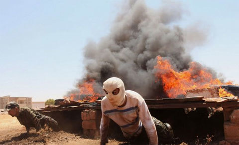 phía tây Libya. Trong ảnh chụp hom 15/5, những người tình nguyện đang tập vượt