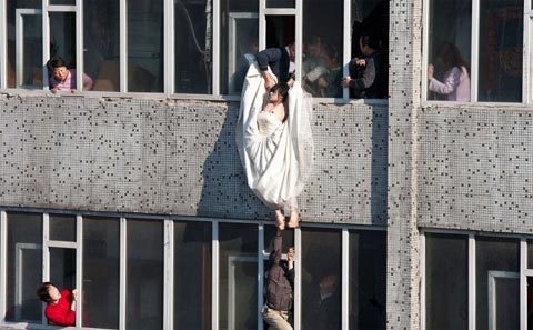 (Trung Quốc) trang điểm thành cô dâu xinh đẹp rồi trèo lên cửa sổ tầng 7 để tự