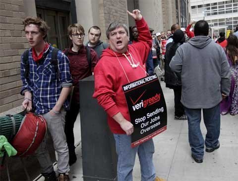 người đem theo biểu ngữ "chấm dứt hỗ trợ cho các công ty" và "đây là thời điểm