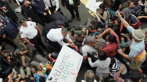 Hôm 1/10, hơn 700 người đã bị bắt khi đám đông phản đối chặn giao thông trên cầu Brooklyn nhằm tiến hành cuộc tuần hành chưa được cấp phép qua cây cầu này.