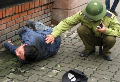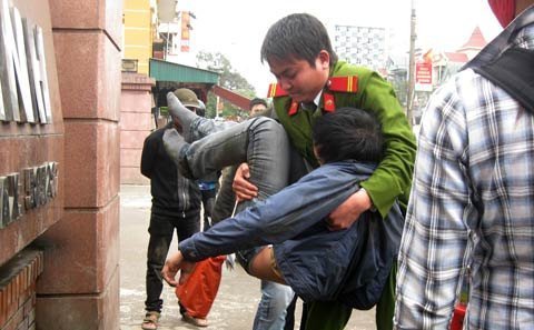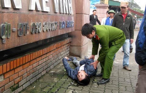 Rất nhiều người cầm điện thoại gọi cho xe cấp cứu 115, nhưng đầu dây không thấy người nhấc máy. Một lúc, người bảo vệ bến xe Vinh chạy ra, dùng tay đập mạnh vào người bị nạn, nhưng nhất quyết không gọi xe cứu người.