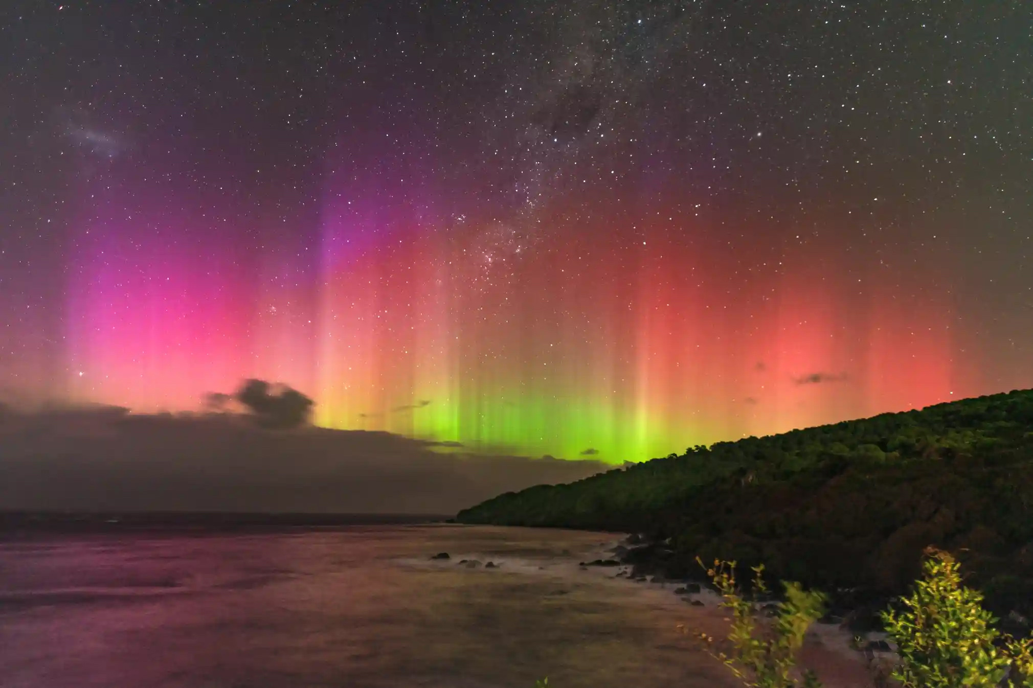 Theo báo Guardian, Australia và New Zealand đã chứng kiến cực quang Australis (còn gọi là cực quang phương Nam) hoành tráng vào tối 24/4. Trong khi cực quang Borealis (cực quang phương Bắc) đã thắp sáng các bầu trời xa hơn bình thường về phía nam, ở khắp Mỹ, châu Âu và châu Á.