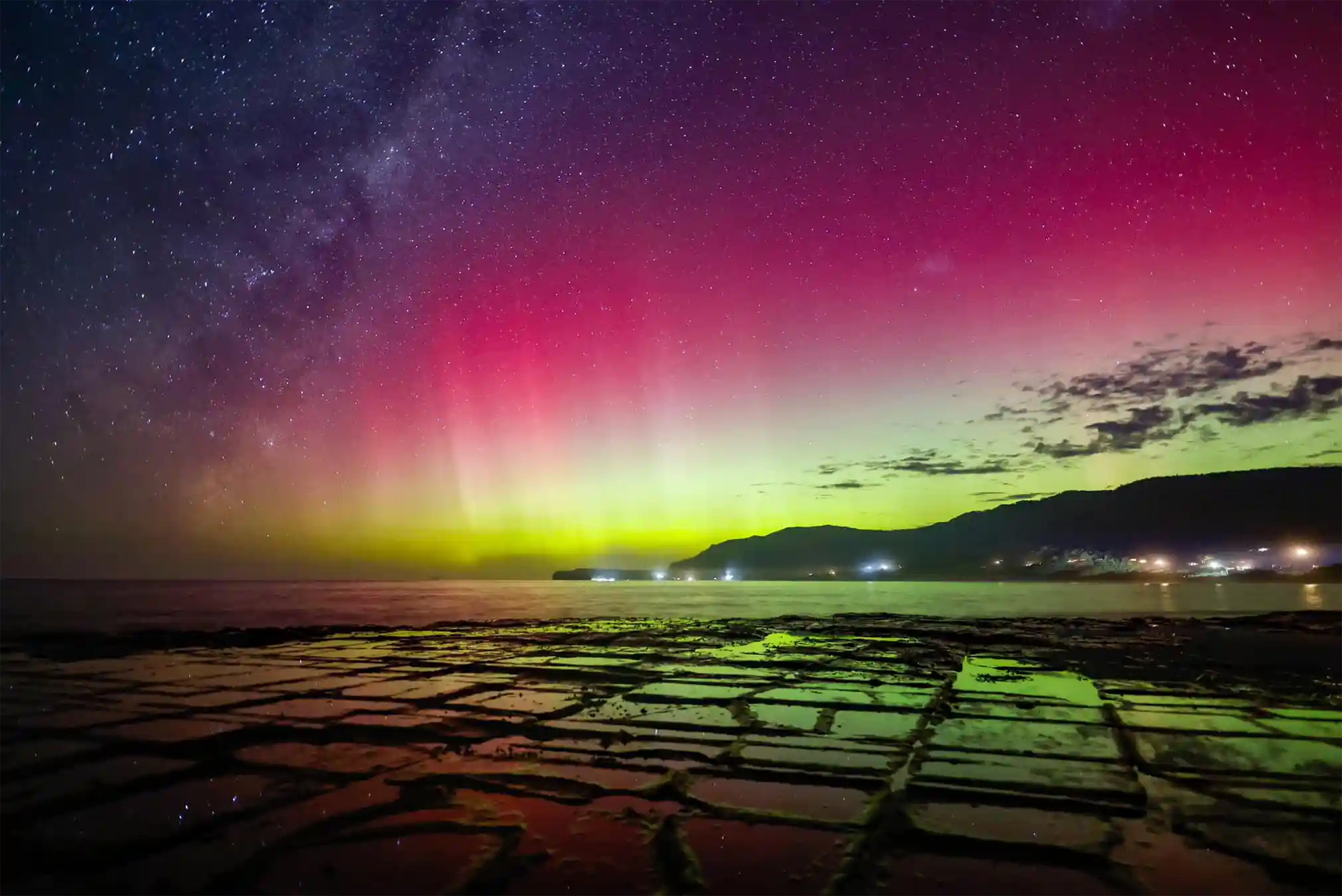 Cực quang Australis ở thị trấn Bluff, New Zealand. Ảnh: The Guardian.