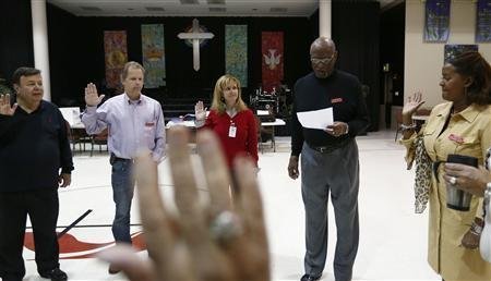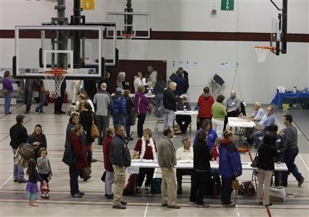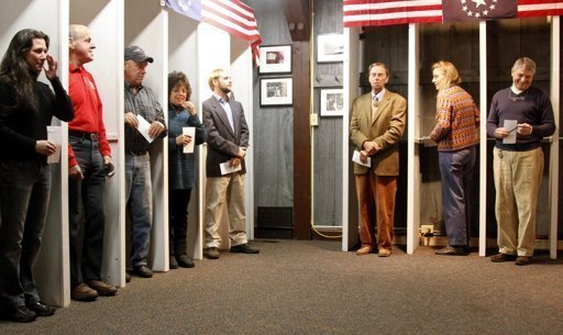 Mười cử tri đầu tiên của ngôi làng nhỏ ở Dixville Notch, bang New Hamsphire chờ bỏ phiếu trong ngày bỏ phiếu chính thức tại Mỹ rạng sang ngày 6/11/2012.