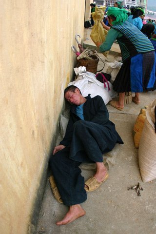 tỉnh táo ra về, nhiều người đàn ông đánh một giấc giữa chợ bao