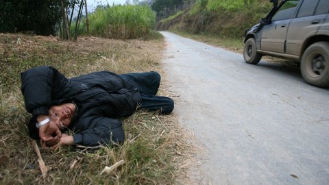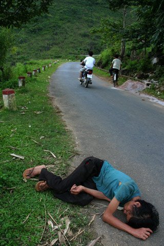 nghiêng say và ngủ bất cứ chỗ nào kể cả ven đường quốc lộ, tỉnh lộ vun vút