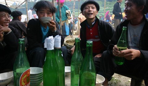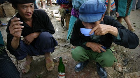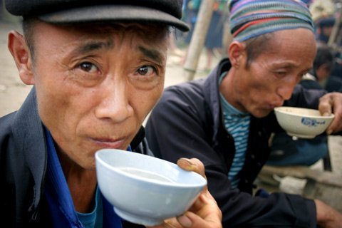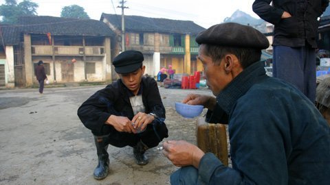 bạn già nâng bát tại chợ phiên Sà Phìn (Sà Phìn – Đồng Văn – Hà