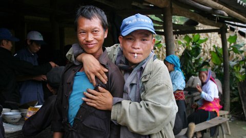 người đàn ông H’Mông này ngả ngay can rượu ngô mời nhau khi vừa