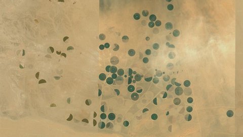 | Hình ảnh này tại Ả Rập Xê Út cho thấy cộng đồng nông trang trong khu vực sa mạc. |
