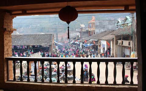 | Phiên chợ Đồng Văn nhìn ra từ ngôi nhà cổ có từ thời Pháp. |