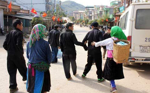 trì. Trên các con đường chật kín người, những bà con người dân tộc Mông,