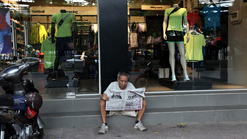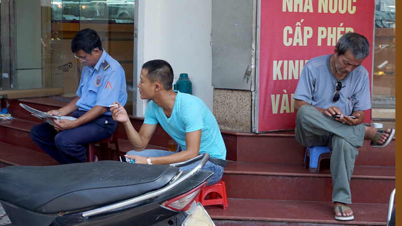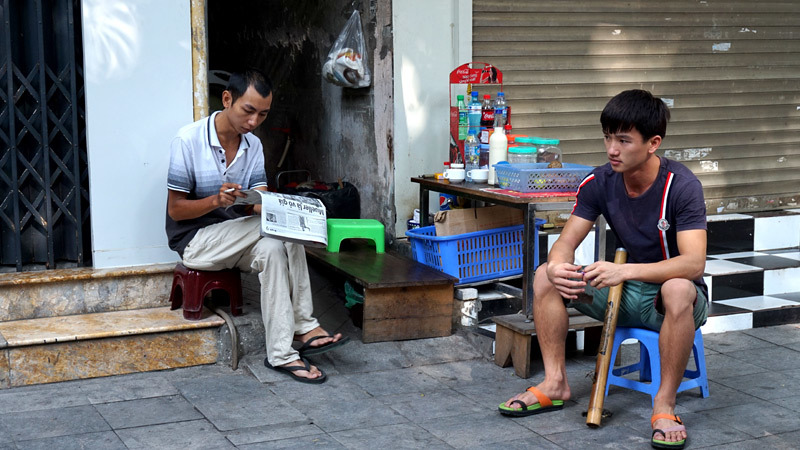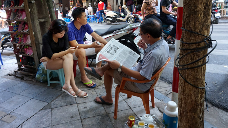 | Đọc tin tức sáng trên phố Hàng Bè. |