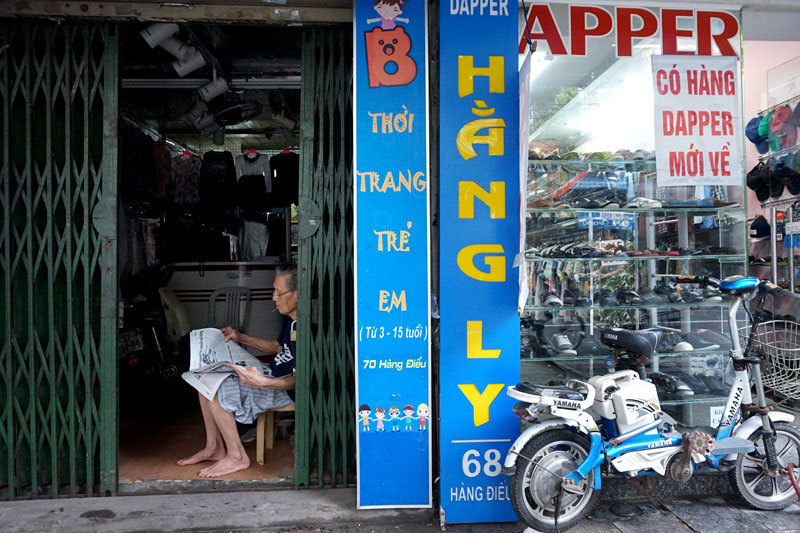 | Một cụ ông ở phố Hàng Điếu vẫn đều đặn theo dõi tin tức qua các tờ báo in vào mỗi buổi sáng. |