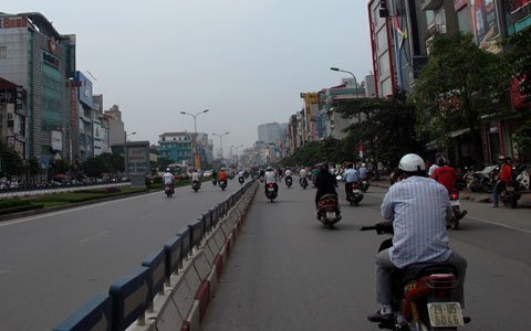 ![]() Trên phố Xã Đàn, phần đường dành cho xe máy rộng thênh thang xe máy vẫn lấn làn dành cho xe ô tô. |