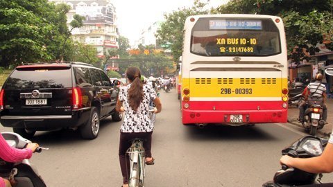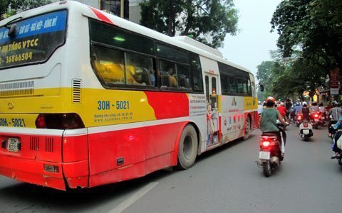 ![]() Mỗi khi xe buýt qua đường đón trả hành khách thì phải lấn sang phần đường dành cho xe máy khiến người điều khiển xe máy bị dồn ép vào rìa đường hoặc lấn sang phần đường dành cho ô tô. |