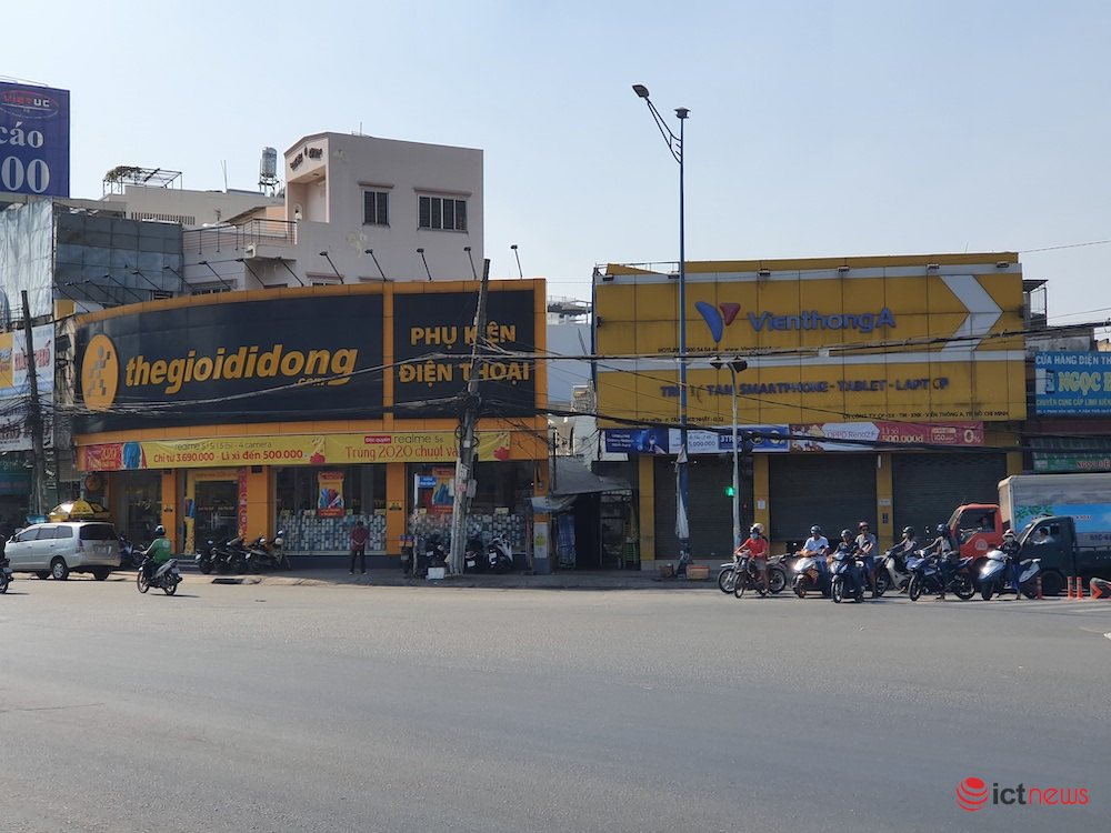 Ngay góc ngã ba đường lớn Trường Chinh - Phan Văn Hớn (Tân Bình), một siêu thị Viễn Thông A đóng cửa im ỉm. Kế bên đó là cửa hàng Thế Giới Di Động đang kinh doanh bình thường buổi sáng đầu tuần. Khu vực sầm uất này còn có cửa hàng của FPT Shop, siêu thị điện máy Chợ Lớn.