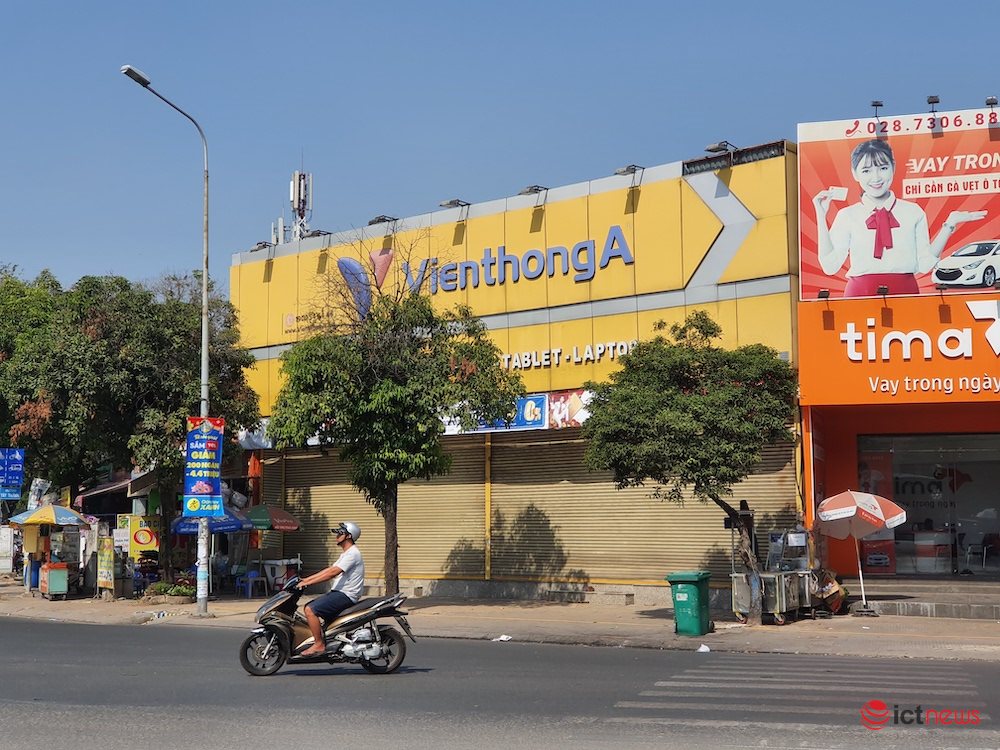 Ở góc đường Âu Cơ - Luỹ Bán Bích (Tân Phú), cửa hàng Viễn Thông A vốn thuộc hạng sang trọng trong khu vực nay cũng kéo cửa, không buôn bán. Hầu hết những siêu thị Viễn Thông A đều có vị trí dễ nhận diện ở các đường lớn ở khu sầm uất.