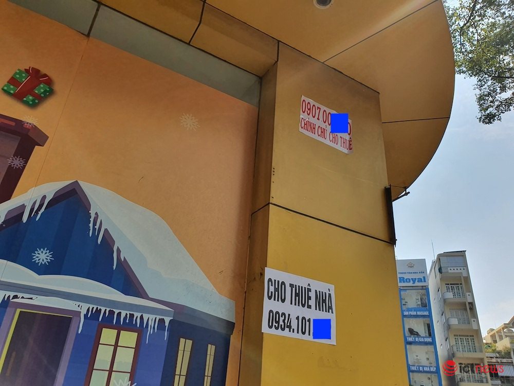 Trên bức tường ở phía đường Sư Vạn Hạnh, một số biển cho thuê nhà được gắn lên bức tường màu vàng đặc trưng của Viễn Thông A. Một số hình ảnh quảng cáo sản phẩm vẫn còn được treo phía trước các cảnh cửa vào siêu thị này.