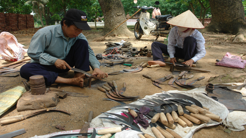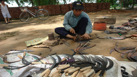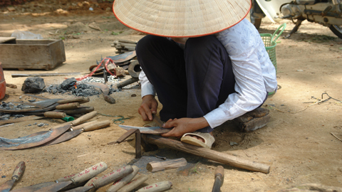 | Bác thợ rèn ở phiên chợ làng Chóa, xã Dũng Liệt, huyện Yên Phong, Bắc Ninh. |