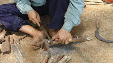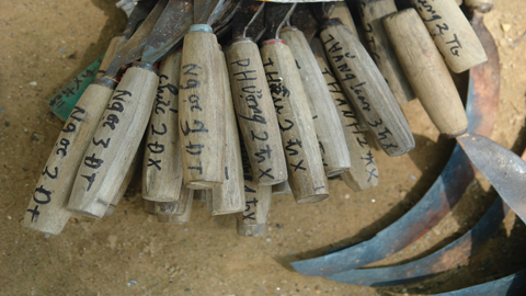 | Để tránh nhầm lẫn, bác thợ rèn phải ghi tên chủ chiếc liềm lên cái cán liềm... |
