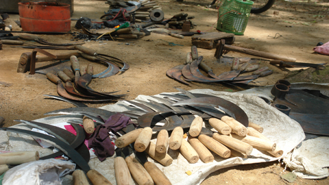 | Những chiếc liềm làm lại lưỡi sẽ được trả cho khách vào phiên chợ sau... |