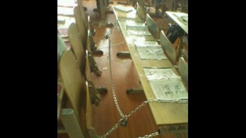 Cuộc chiến giành chỗ ngồi này quyết liệt đến mức họ phải xích ghế và bàn lại với nhau khi họ ra ngoài giải lao. Nhận chỗ bằng sách giáo khoa hay bằng bình nước dường như là chưa đủ.