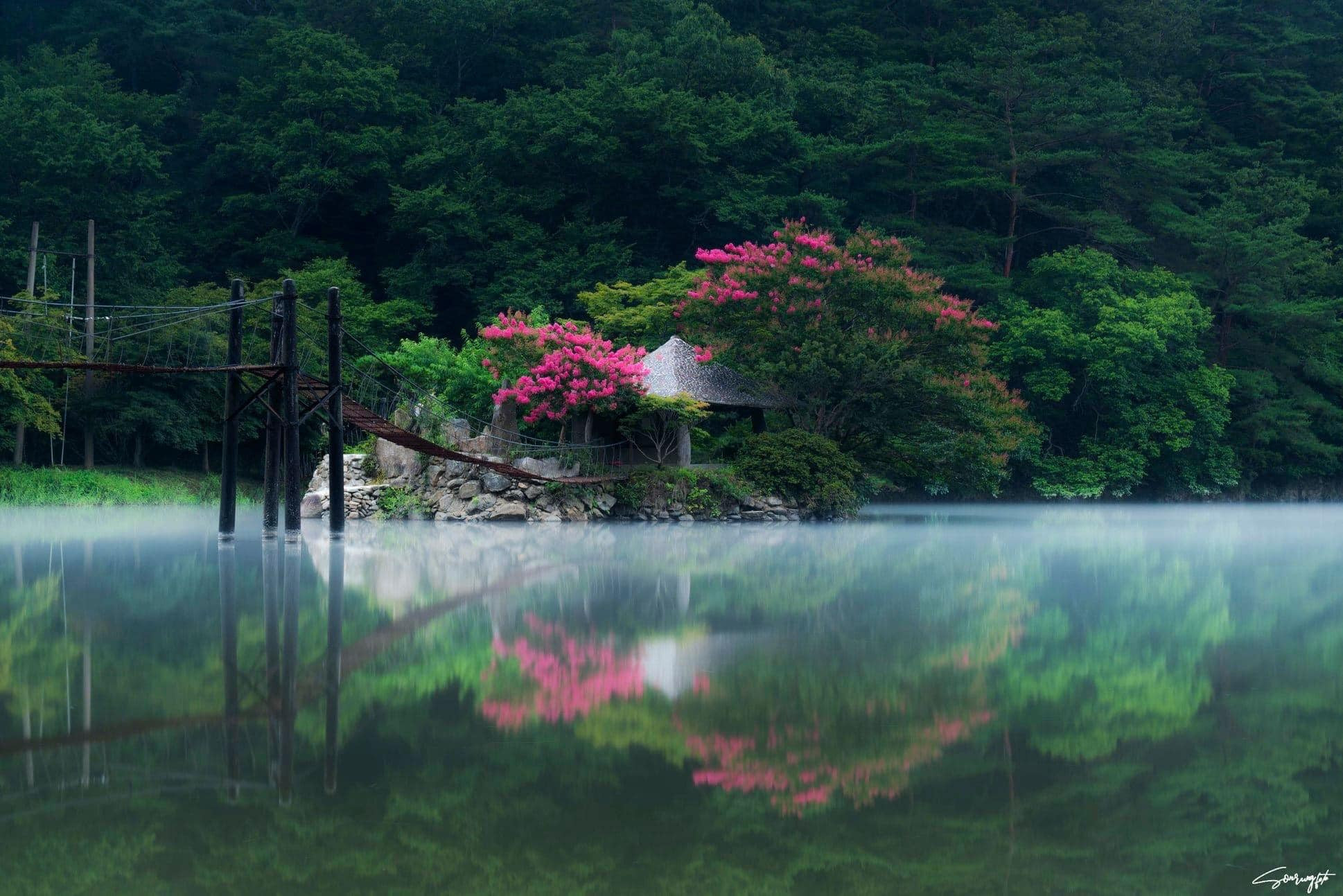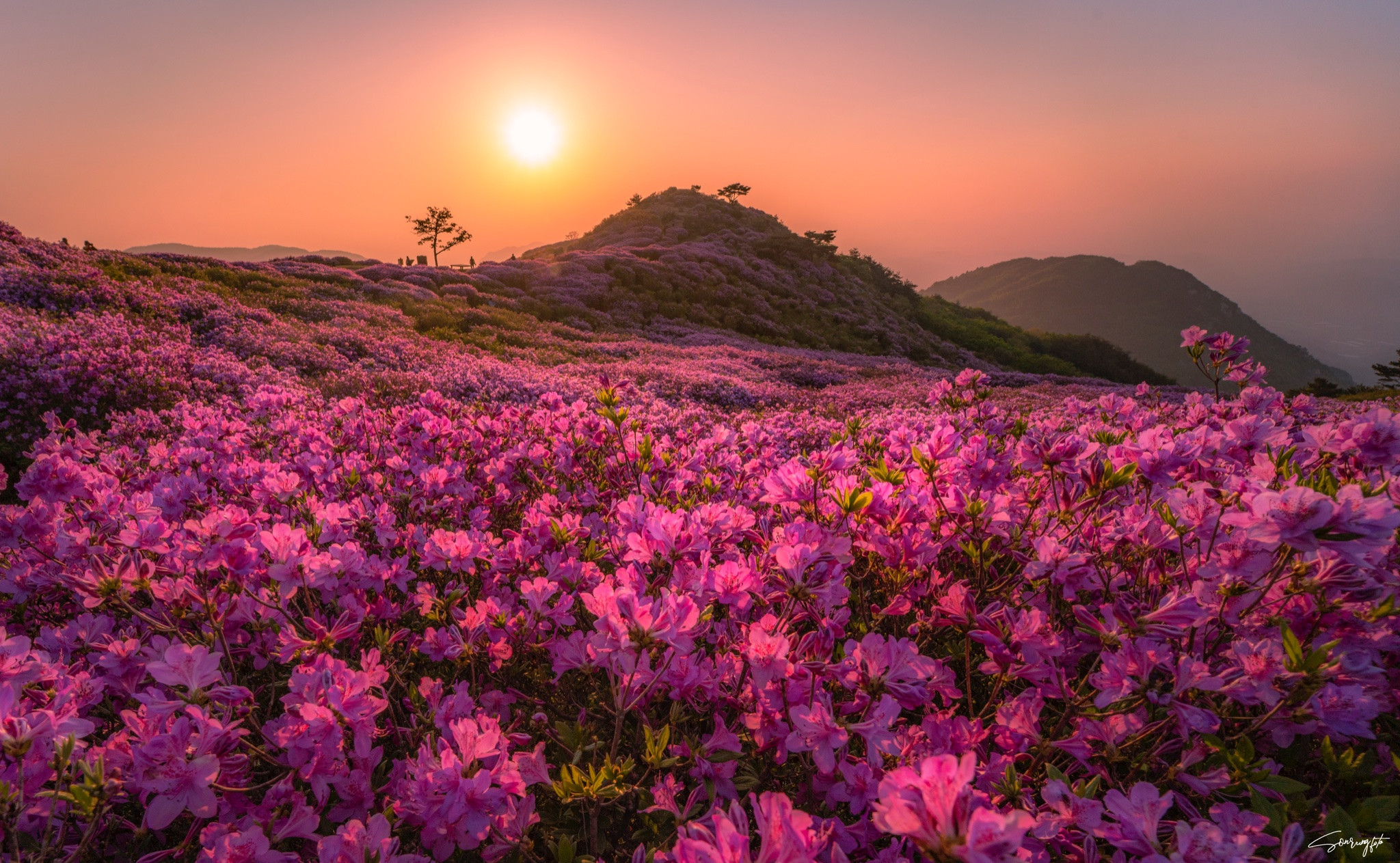 Bức hình tại Gapdun-ri cũng là bức ảnh kì công của Quang Sơn. Đây là lần đầu tiên anh lái xe một mình hơn 200km để tới khu vườn bí mật này và kịp chiêm ngưỡng khoảnh khắc sương giăng lúc bình minhSeowon là một di tích lịch sử ở Hàn Quốc. Vào tháng 6 hàng năm, nơi đây thu hút du khách bởi sự xuất hiện của rất nhiều đom đómCẩm tú cầu khoe sắc vào mùa hạ tại ngôi nhà màu hồng Busan - địa điểm giới trẻ yêu thíchBông hướng dương bừng nở giữa màu xanh cỏ cây tại nông trại AnseongMột dòng sông phủ kín sương mờ ảo. Bức hình chụp tại cây cầu nổi tiếng ở Andong, cách Seoul khoảng 200kmKhoảnh khắc bình mình ở Homigot, Pohang - điểm cực Đông của Hàn QuốcBạn đồng hành của Sơn là chiếc máy ảnh SonyA7r3, ống kính 24-70GM và 70-200G. Mùa hè Hàn Quốc thường bắt đầu vào cuối tháng 6 và kết thúc khi đầu thán 9. Nhiệt độ mùa hè ở quốc gia này không quá nóng, dao động từ 25-35 độ C và là thời điểm tổ chức nhiều lễ hội truyền thống hấp dẫnTheo Sơn, mỗi mùa, Hàn Quốc có nét đẹp riêng. Ngoài tới du lịch vào mùa xuân hoa anh đào hay mùa thu lá vàng thì du khách Việt có nên trải nghiệm mùa hè xứ sở Kim Chi. Hoa đỗ quyên khoe sắc ở núi Hwangmaesan, Gyeongsangnam-do mùa xuân
