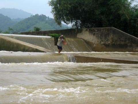 Phía xa xa, bờ đập thuỷ điện Bản Vẽ vẫn tiếp tục xả nước lũ và phía dưới thượng nguồn các huyện Anh Sơn, Nam Đàn, Thanh Chương, Hưng Nguyên (Nghệ An) vẫn tiếp tục bị ngập úng.