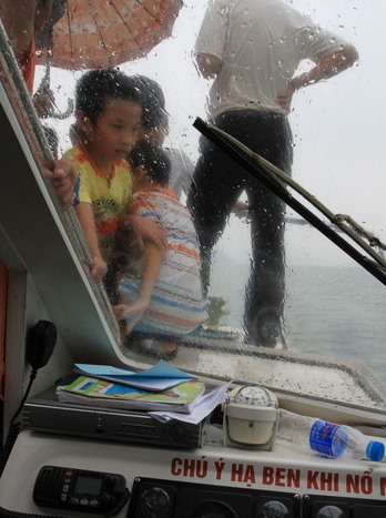 Đến giữa biển thì mưa, những người đứng trên boong đều ướt hết