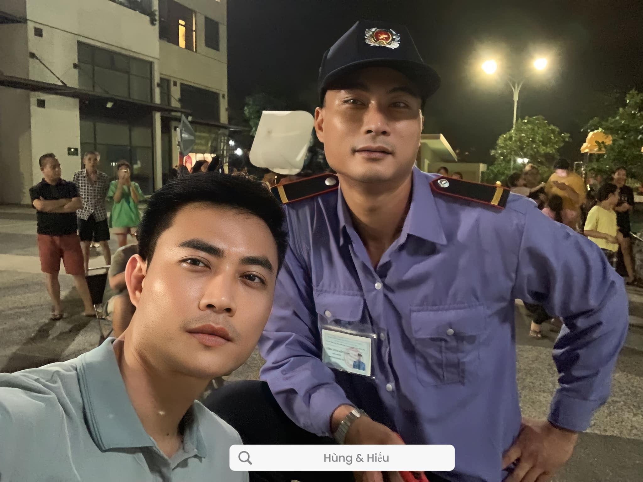 Diễn viên Trần Vân hài hước chụp ảnh ở hậu trường phim. Tiến Lộc (vai Hùng) ngoài đời khác hẳn vẻ khó tính, cau có trên màn ảnh.