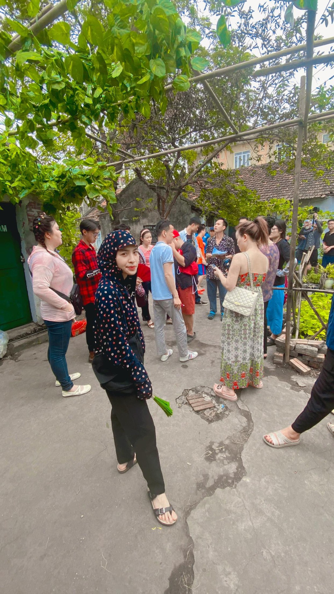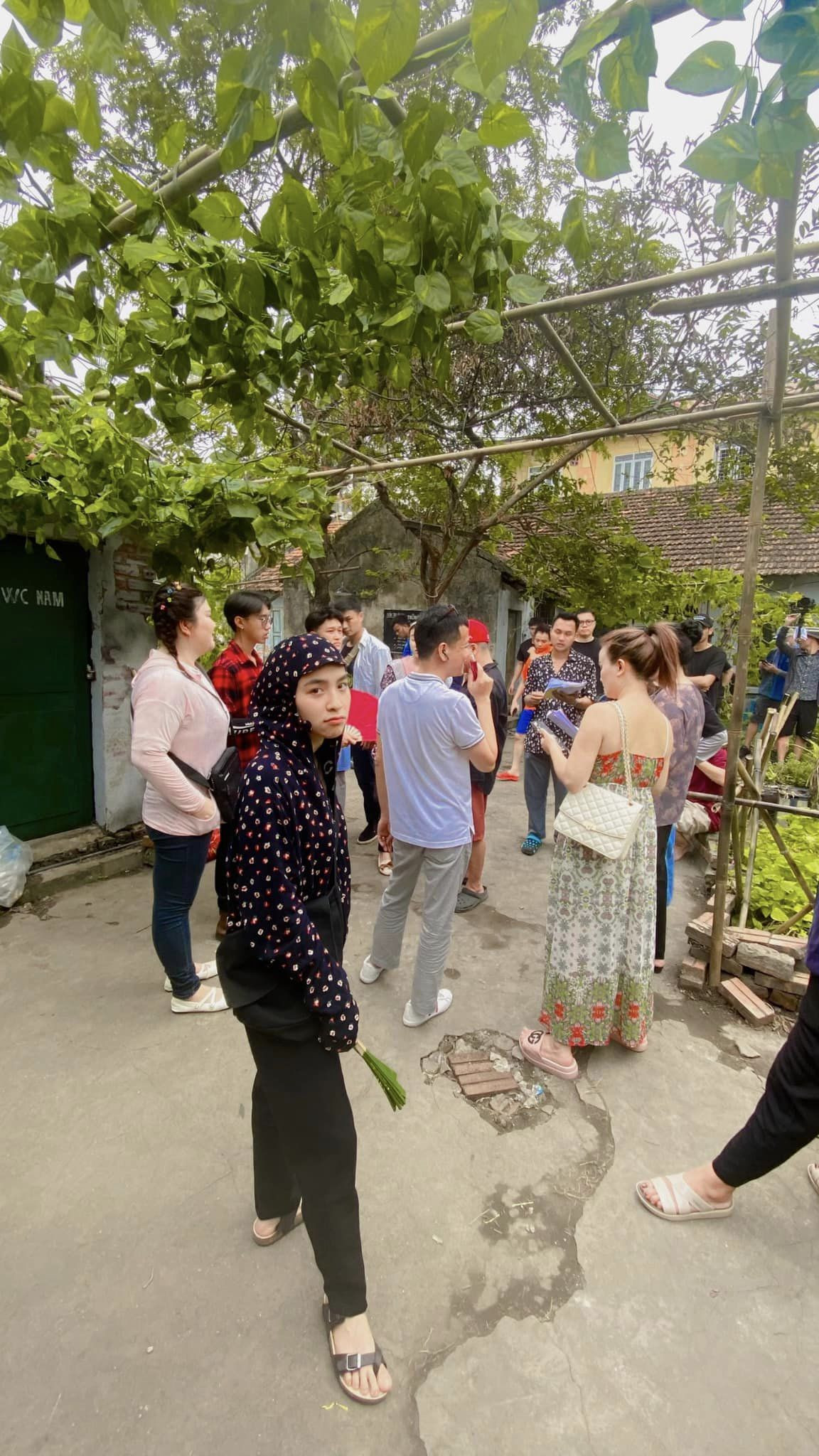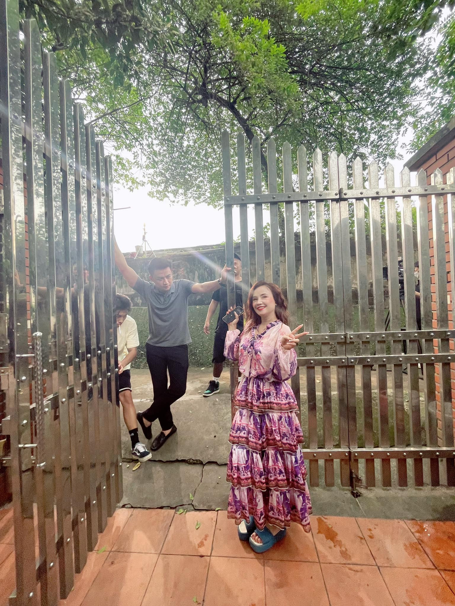 Diễn viên Hoàng Yến vào vai chị Lệ bán trà đá nhí nhảnh chụp ảnh với bạn diễn kém tuổi ở hậu trường."Làng trong phố" vẫn đang trong quá trình vừa quay vừa phát sóng. Phim dự kiến dài 30 tập.