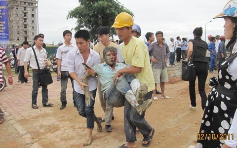 Ngay lập tức nạn nhân được đưa ra khẩn trương để đi cấp cứu. Ảnh: Duy Tuấn